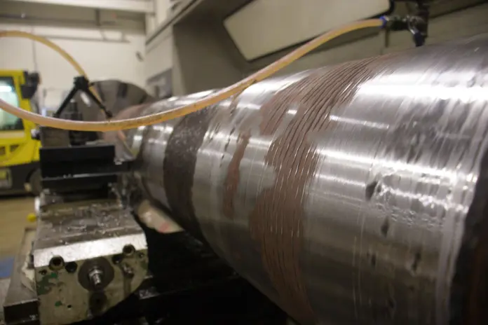 We machined down all existing wear and carbide on the OD of the roll until all cracking was removed as shown below.