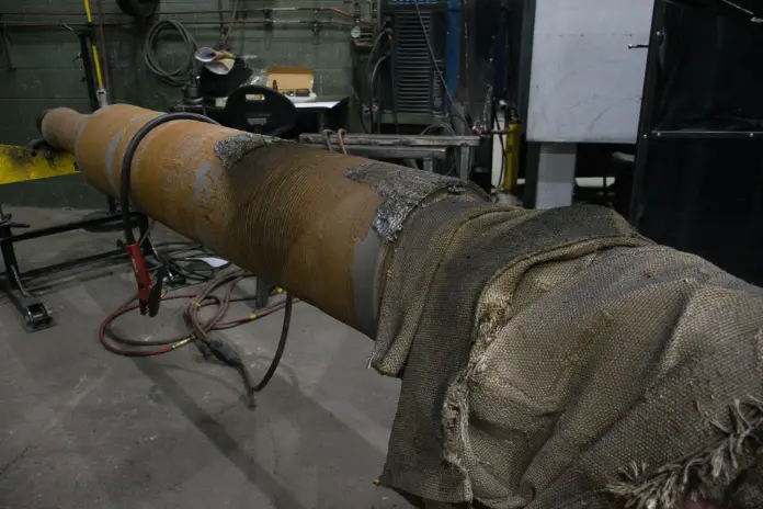 After removing all necessary material, we began the process of building it back up and reinforcing it with wear resistant materials.